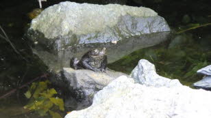 Im Sommer kann man an schönen Tagen den Flug von Libellen beobachten und gelegentlich auch Frösche im Teich endecken.